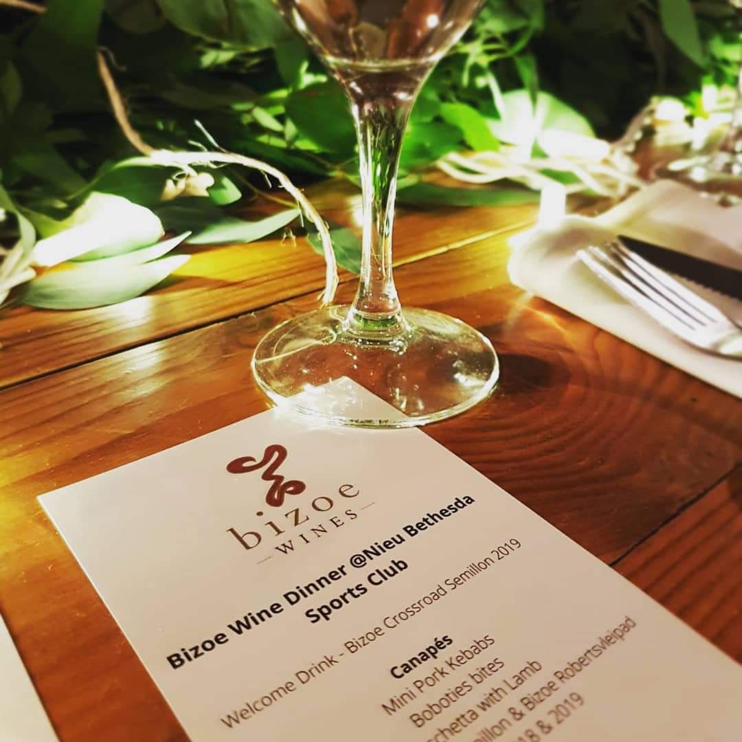 Nieu-Bethesda hosted 20 wine estate during the Stoeptasting in 2021. This made us jump to the opportunity to host a Bizoe Wine Dinner at the sports club in town. Bethesda as known to the locals is where I and Estalét got married in 2007. Remember the day as a bitterly cold day, but a joyful occasion filled the air.
